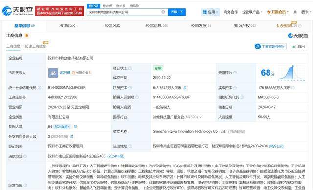 深圳(chou)市(shi)其域立(li)异(yi)科技有限公司成立(li)于2020年12月,法定代表人(ren)为赵开勇,经营范围含(han)软件开辟、野生智能硬件销售(shou)、工(gong)业呆板人(ren)销售(shou)等。股东信息表现,该公司现由赵开勇、美团旗(qi)下天津三快(kuai)科技有限公司及上述新增(zeng)股东等配合持股。公开资料表现,该公司是一家提供智能三维技能服务的企(qi)业。