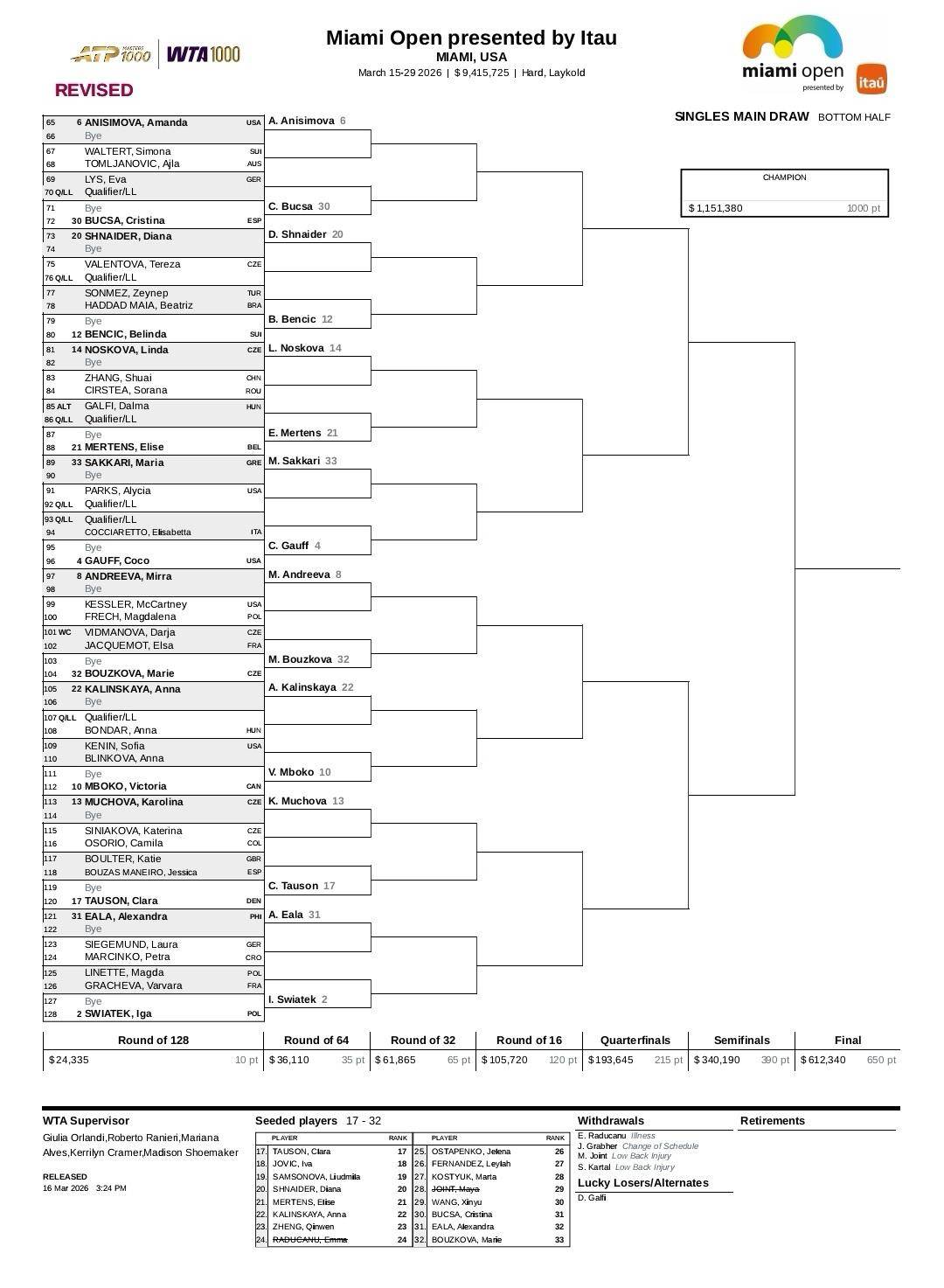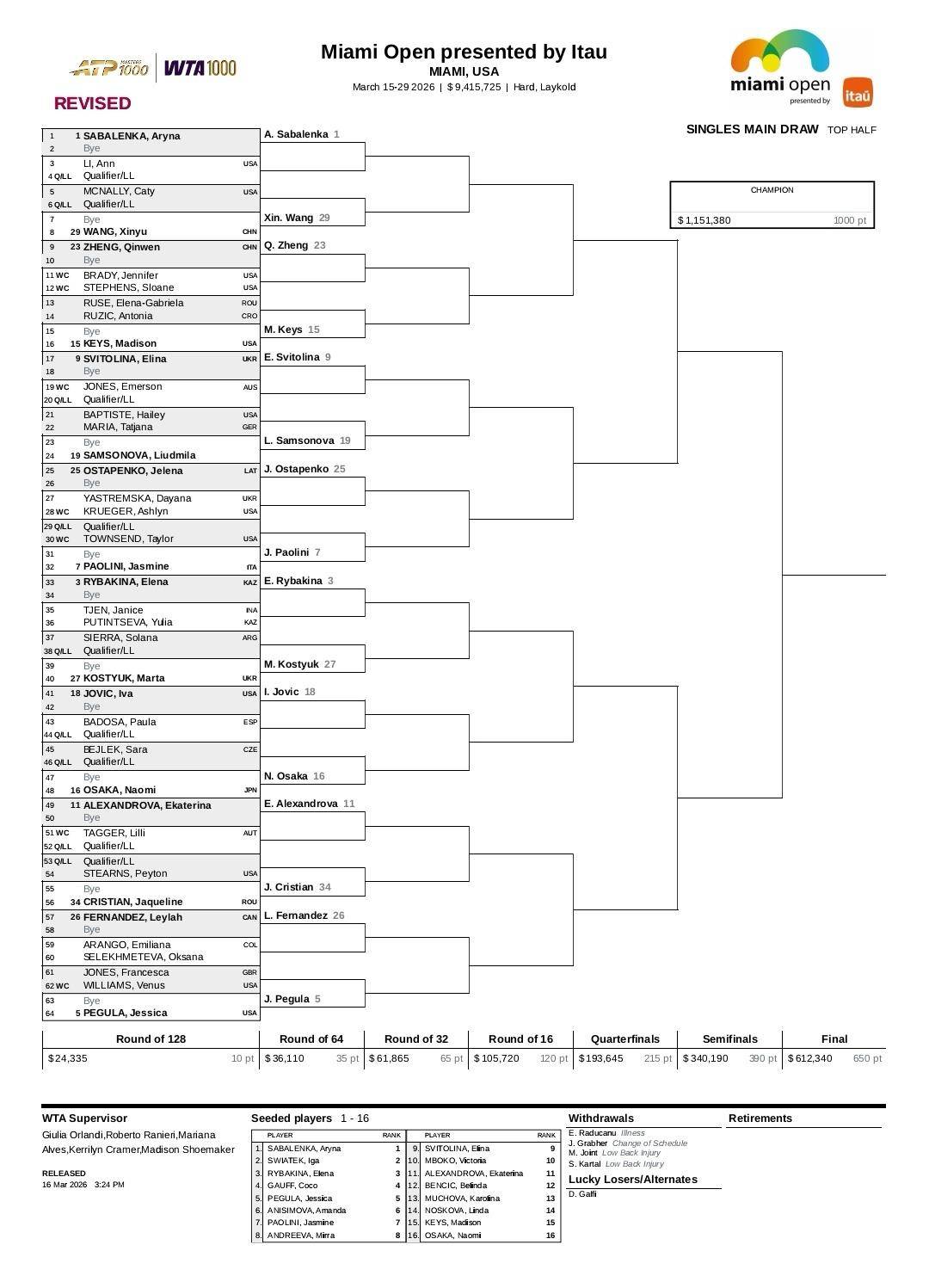 今天(17日(ri)),WTA1000迈阿密站最新签表宣布(bu),前八种子对(dui)位以下: