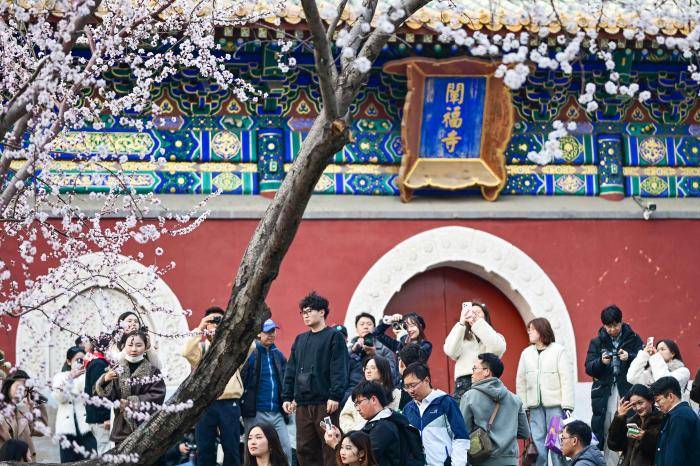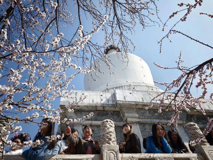 3月15日,游(you)客在北京北海公园赏花。摄/新华社(she)记者 陈晔(ye)华 邢广利